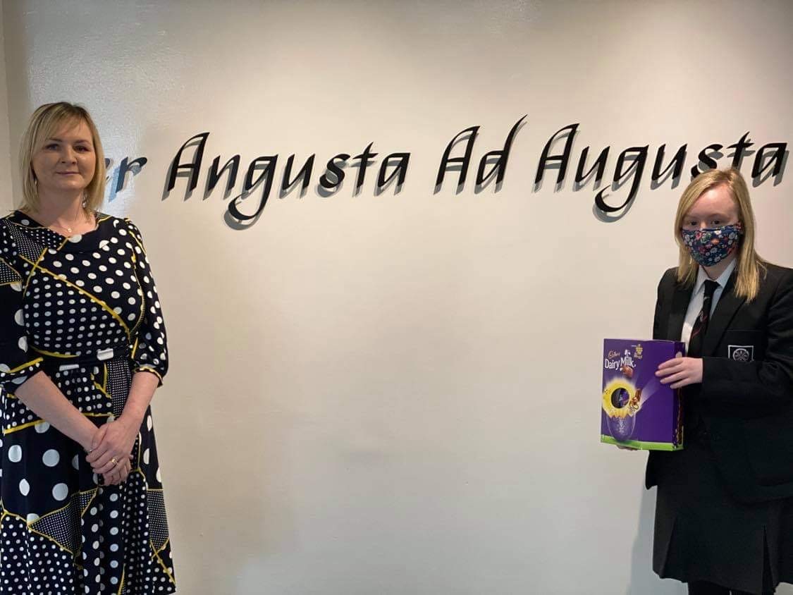 Mrs Wright (Head of Maths) presented Emily with her prize. The rest will receive their prize on return to school. Well done to everyone who took part.