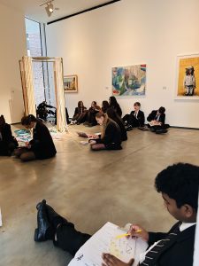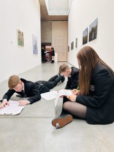 Y10 students who have expressed an interest in continuing their studies in Art and Design were given the opportunity to visit The MAC as part of the ‘Schools in Residence’ programme. Students were welcomed by Kira from the education team, who went on to give an overview of the current exhibition ‘The Lost Paintings’. Students were then given the opportunity to explore the works across all 3 gallery spaces, making written notes of their investigations and later creating visual responses. Hazelwood Integrated College, another of the schools involved in the project, were also visiting the gallery and all students worked creatively alongside one another. Moving the classroom to this space and working directly from an exhibition is invaluable in providing a real and rich learning experience. Thank you to the Freelands Foundation for funding this opportunity.